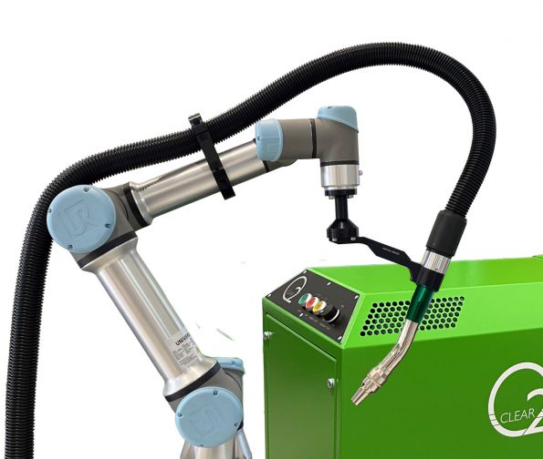 It is designed to be one of the most efficient fume extraction systems available in the welding industry – the 8XC Cobot MIG Fume Extractor. This torch is available in four different angles: 22°, 35°, 45°, and straight. When the 8XC Cobot MIG Fume Extractor is used with the ClearO2 W-series 100 and 200, it allows for up to 98% of welding fumes to be captured directly at the source of the fume. This Cobot 8XC MIG Fume Extractor is one of the safest and most effective solutions available to ensure the safety of welding workers and for better working environments, as well as working with the UR10e, UR5e, & UR16e Universal Robots.