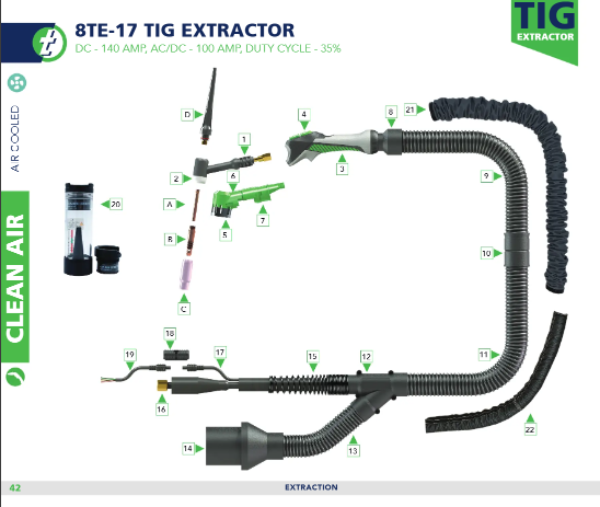 | 8TE20010508340 | 8TE-17 Tig Extractor 8mtr CA Fronius 35-50mm | 1 |